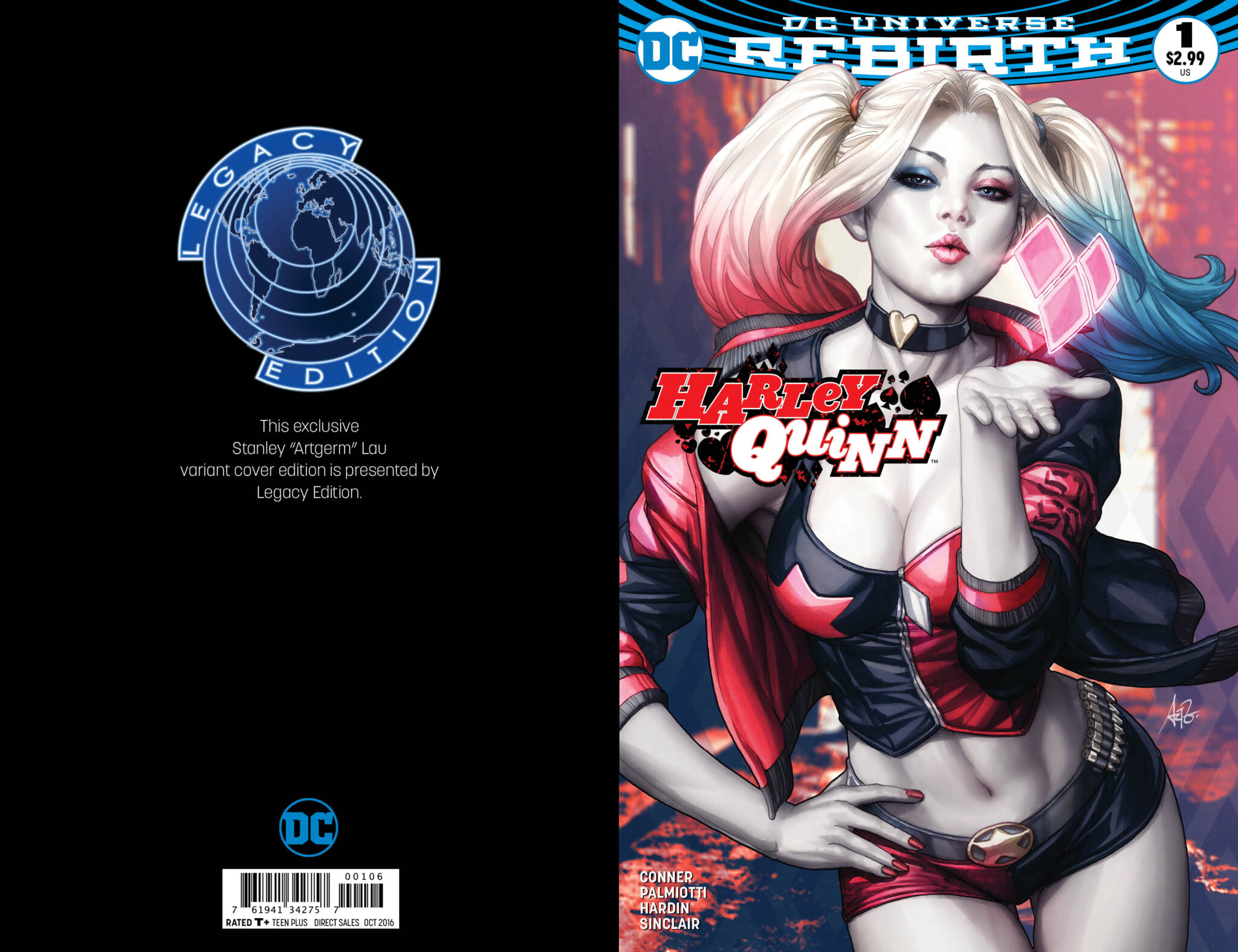 Here is the final front and back covers to our exclusive Harley Quinn #1 Legacy Edition Color, Copic and Inked Line Art variants with art by Stanley “Artgerm” Lau! Presale. Releases 8/3/16.