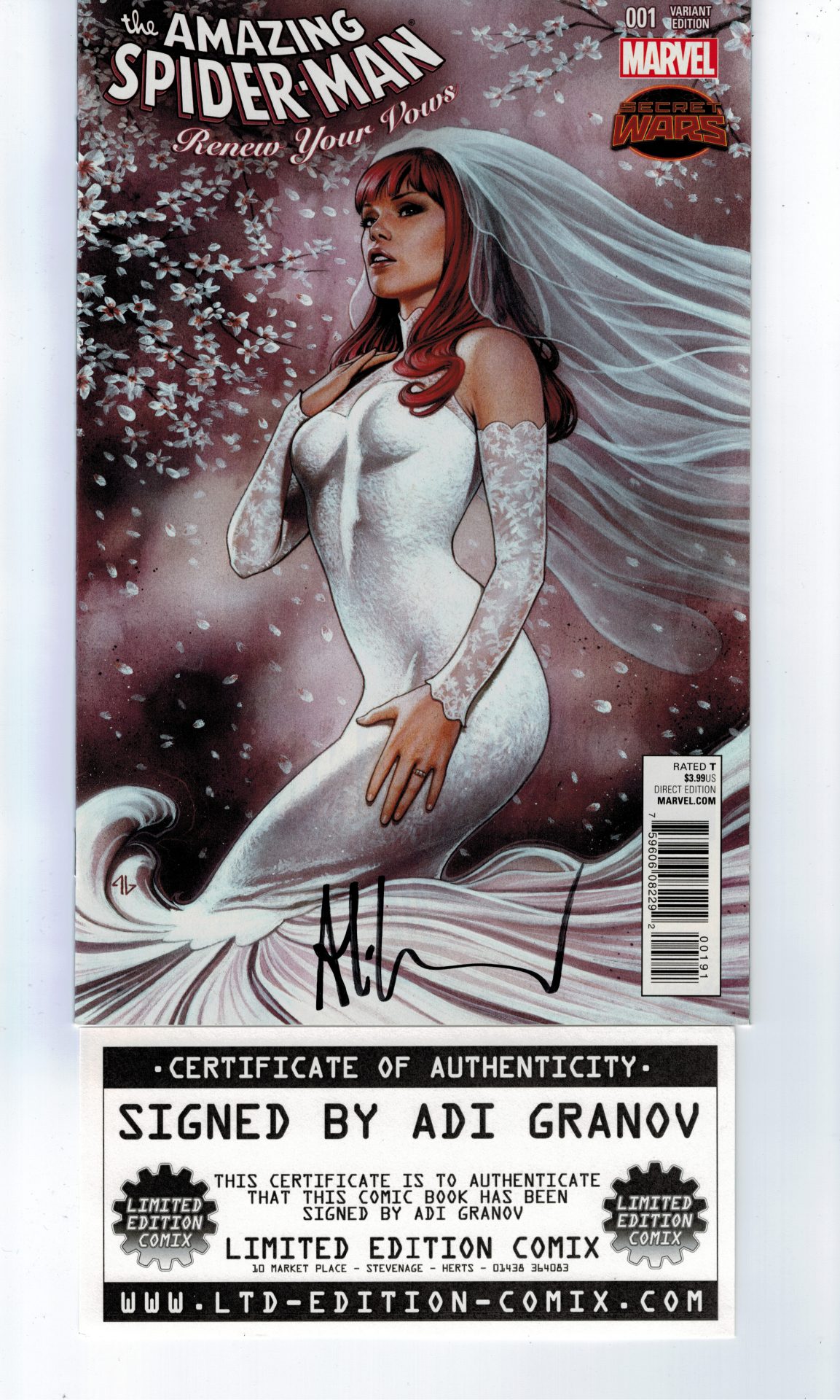 [bs_button size=”md” type=”info” value=”More Info” href=”https://legacycomics.com/shop/amazing-spider-man-renew-your-vows-1-legacy-edition-variant-signed-by-adi-granov/”]