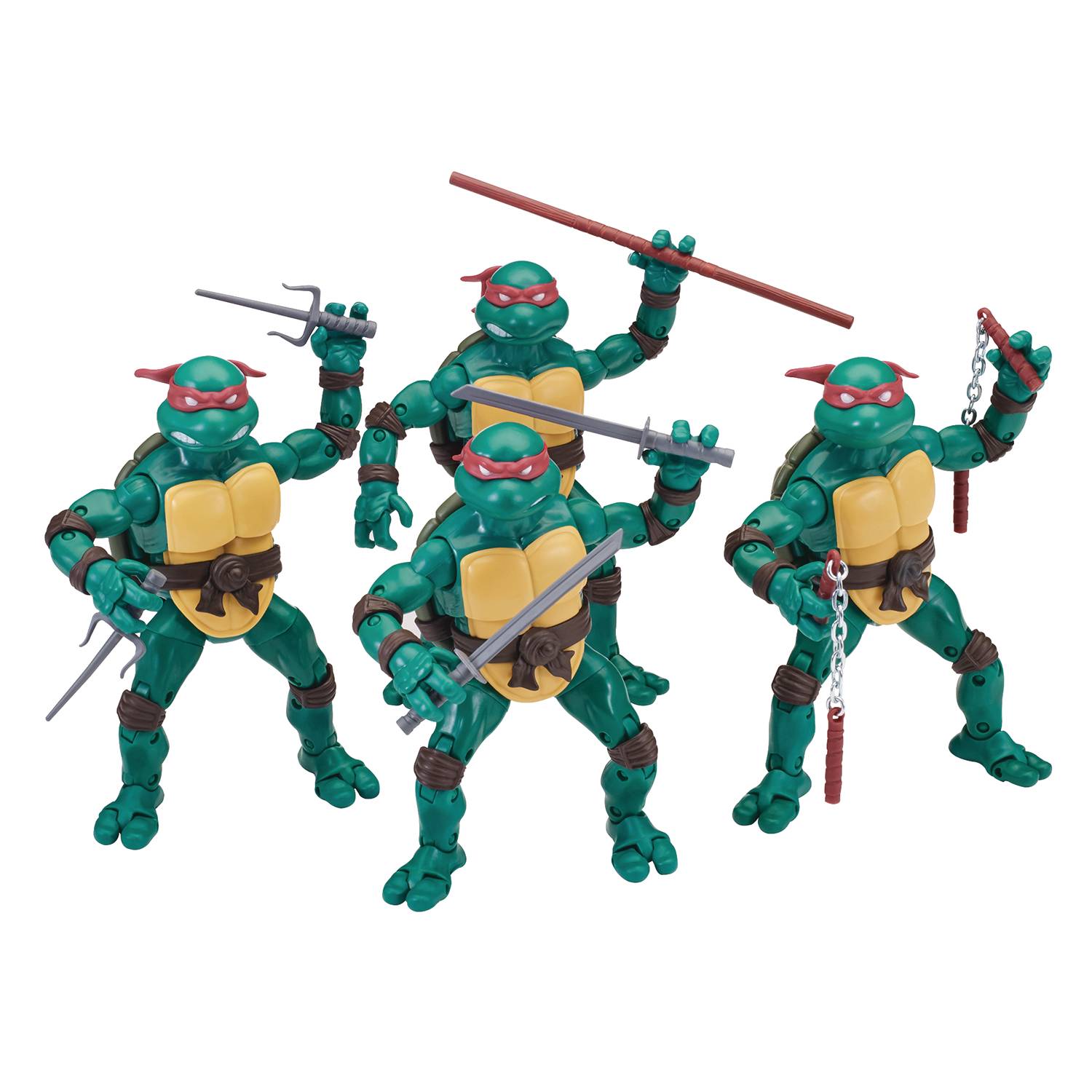 From Playmates. A PREVIEWS Exclusive. Cowabunga Dudes! Busting out from the classic colored comics by Eastman and Laird come the Teenage Mutant Ninja Turtles Elite Series action figures from Playmates! Featuring 34 Points of articulation, each figure is outfitted in their original red bandana and comes with personal weapon accessories. With a personalized sewer lid base and collectible window box package with iconic graphics and logo, fans can relive the fun and excitement of the classic Teenage Mutant Ninja Turtles with these PREVIEWS Exclusive figures! Collect Michelangelo, Leonardo, Raphael, and Donatello. Allocations may occur.