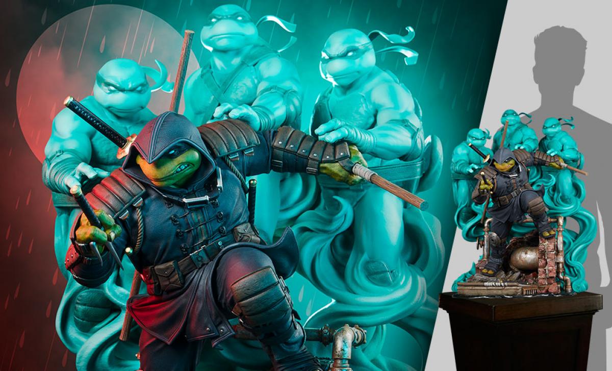 From Playmates. A PREVIEWS Exclusive! Taken right from the hit comic book, this Last Ronin action figure has it all! This meticulously detailed, authentically decorated, and highly poseable figure stands 4.5″ tall and features 14 points of articulation to recreate your favorite scenes. Don’s bo staff, Mikey’s nunchaku, Raph’s twin sai, and both of Leo’s katanas, one with a broken blade, are included as accessories, along with a grappling hook and rope that fasten to his accessory belt. With a limited black-and-white chase to hunt, this is a figure that collectors won’t want to miss! The PREVIEWS Exclusive Last Ronin figure comes packed in a highly collectible Last Ronin branded window box package that includes an overview of his mission.