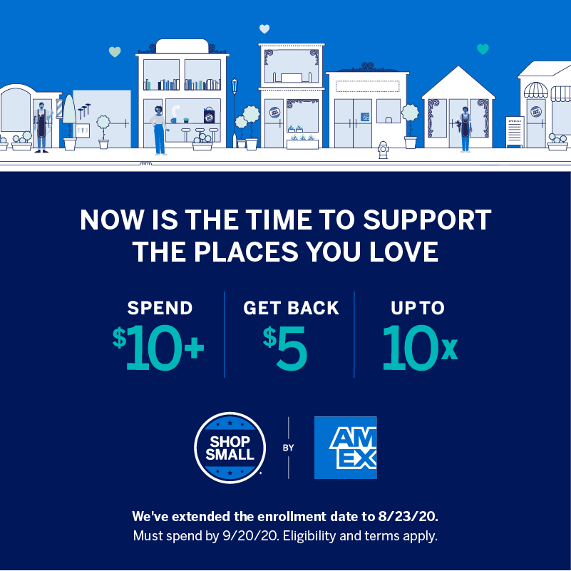 Make sure you enroll your American Express card by 8/23/20. Works with online or in store purchases at shop small registered businesses like us!